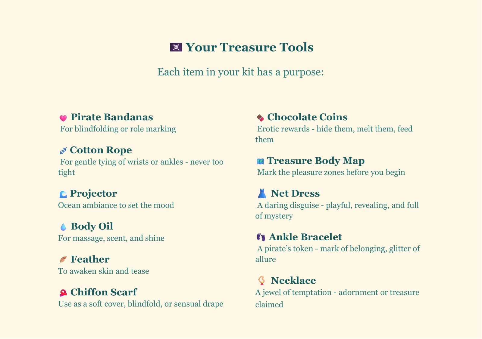 Embark on a thrilling voyage with our Role Games Pirates Kit, designed to ignite your wildest desires! Explore uncharted territories of passion with intricate body maps guiding your adventure. Unleash your inner buccaneer with a unique scenario that promises an unforgettable narrative.